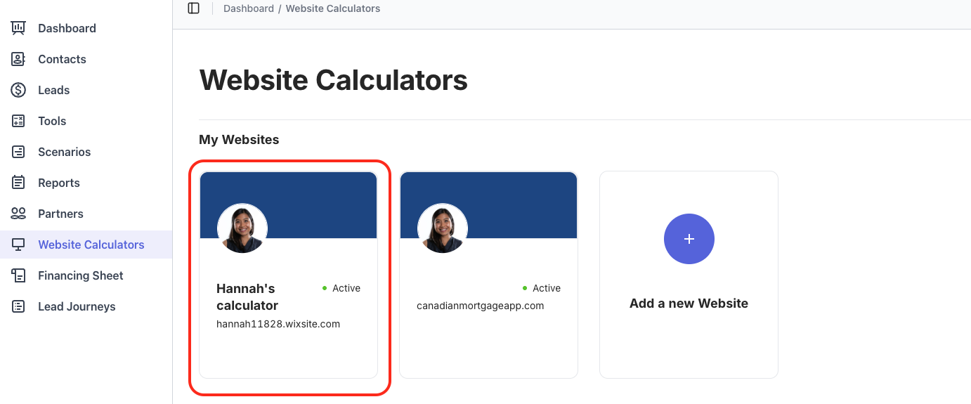 In your Web Admin Dashboard, click Web Calculators on the left-hand side, then select Add a New Website.