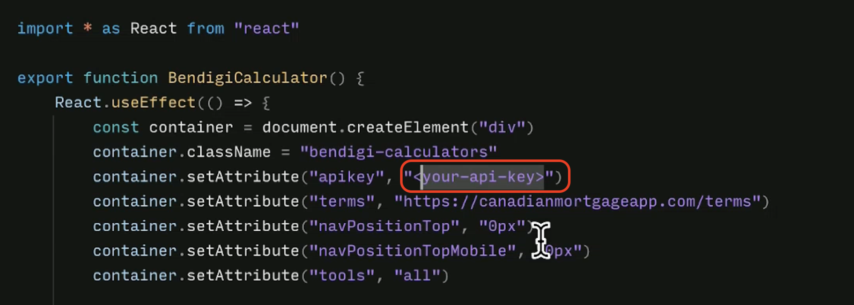 9. In the snippet, replace "Your API Key" with the API key you saved in your notepad.