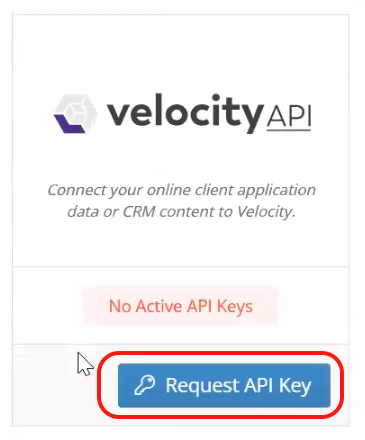 Step 6: Scroll down and look for Velocity API. If it says no active API key, click on "Request API Keys." If it says Active API Keys, proceed to step 9.